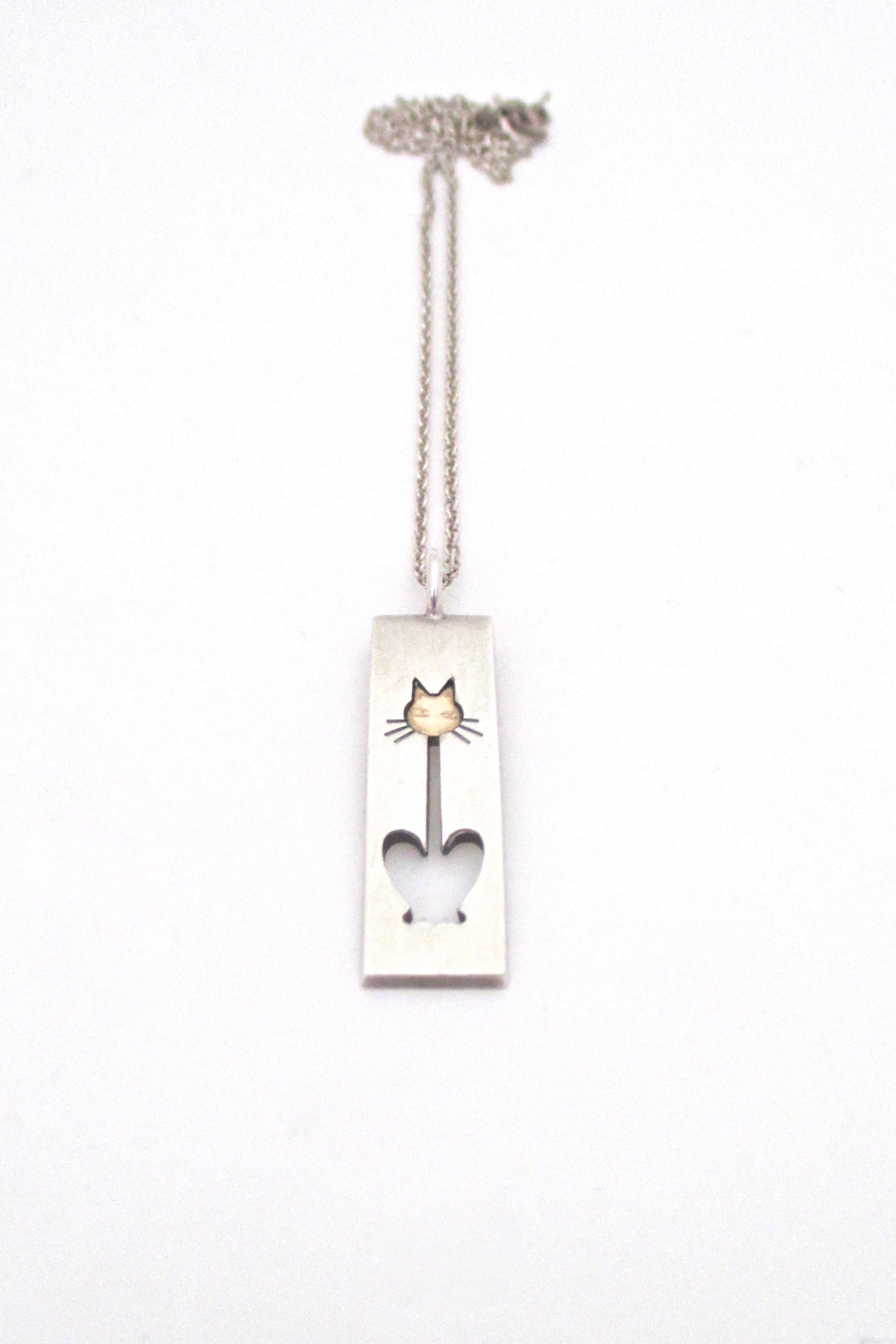 Elis Kauppi for Kupittaan Kulta silver & gold cat pendant