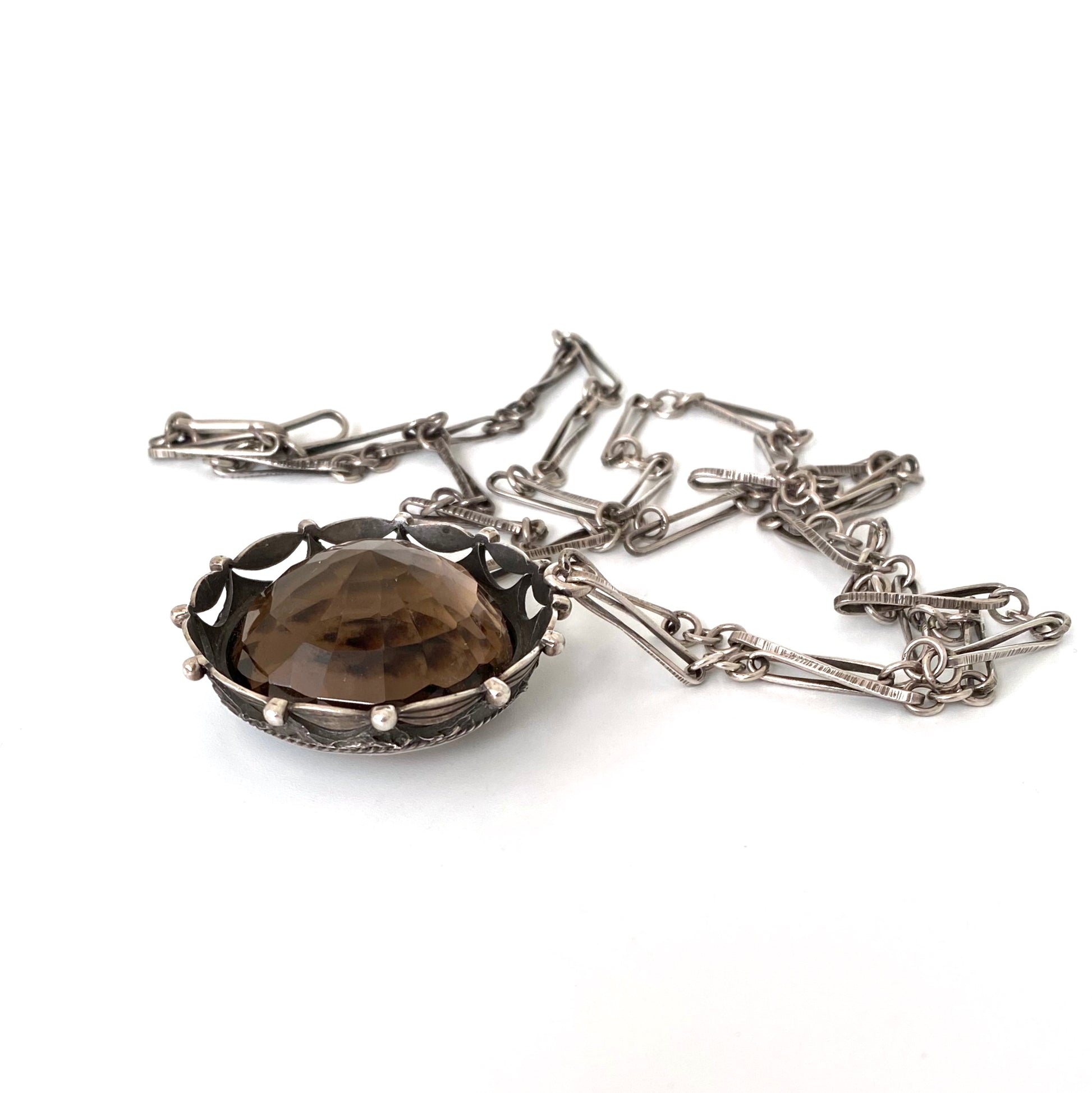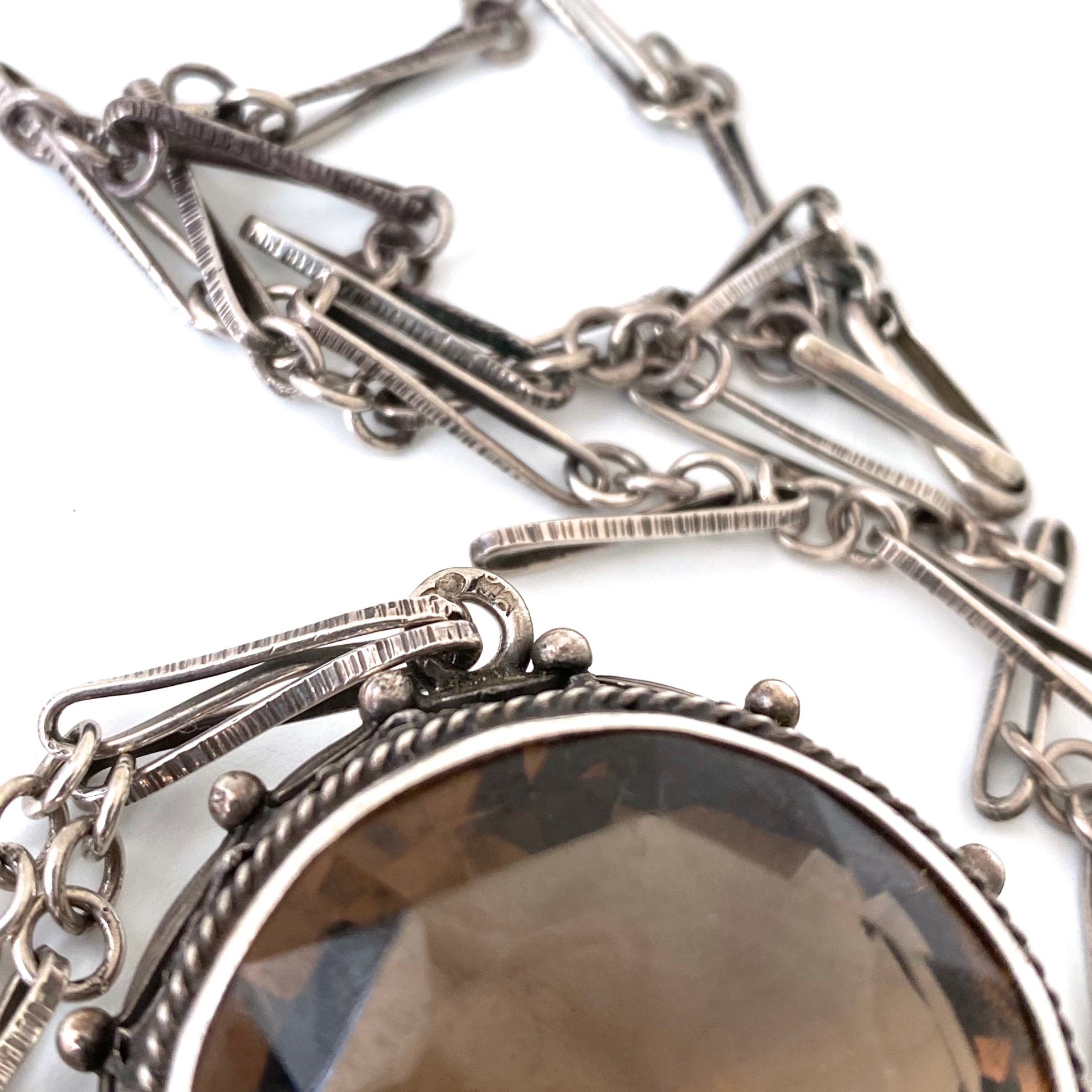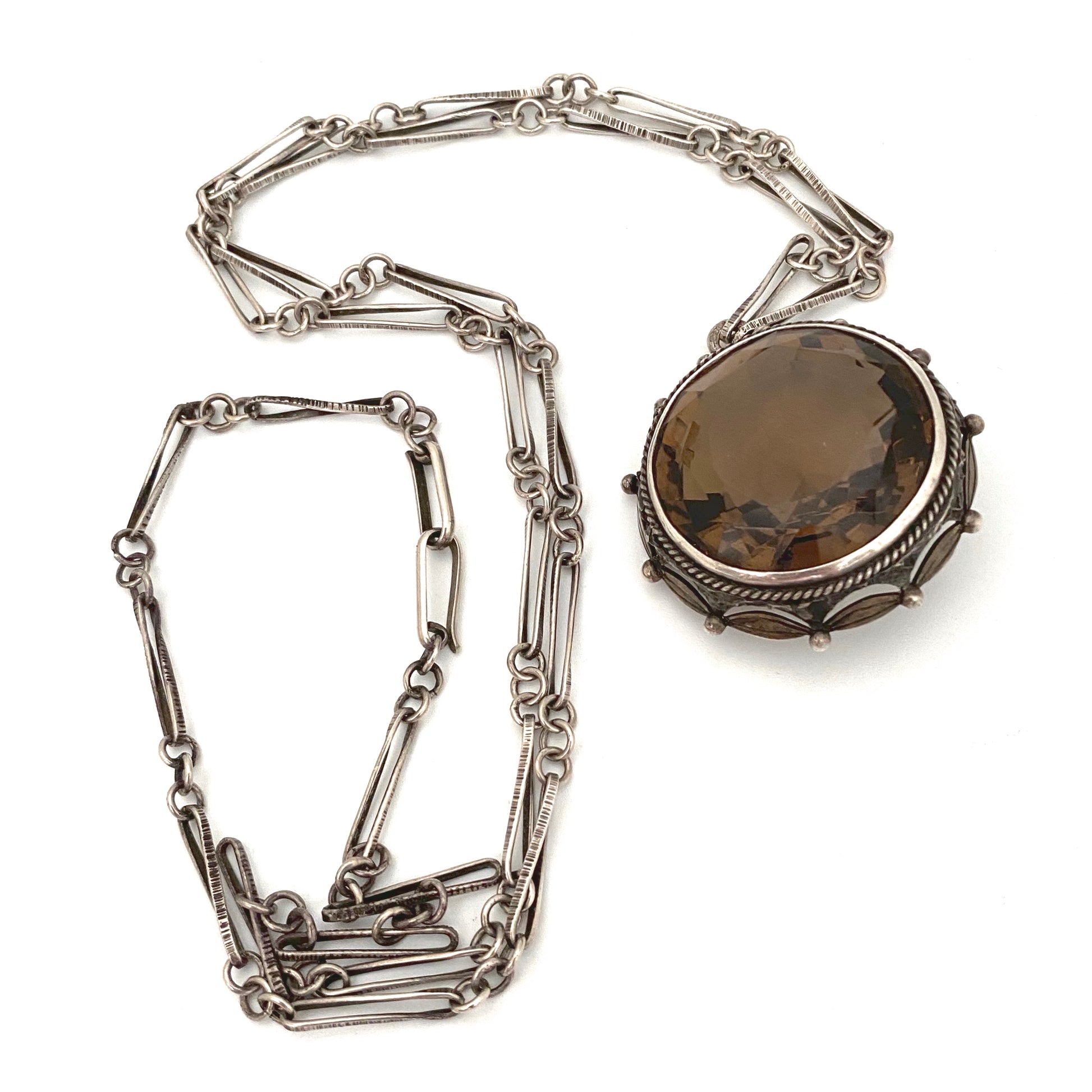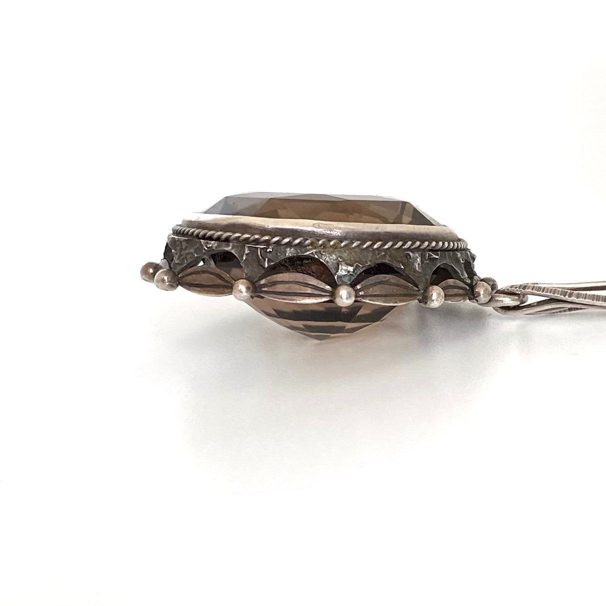 ORNO Poland textured silver & large smoky quartz pendant necklace