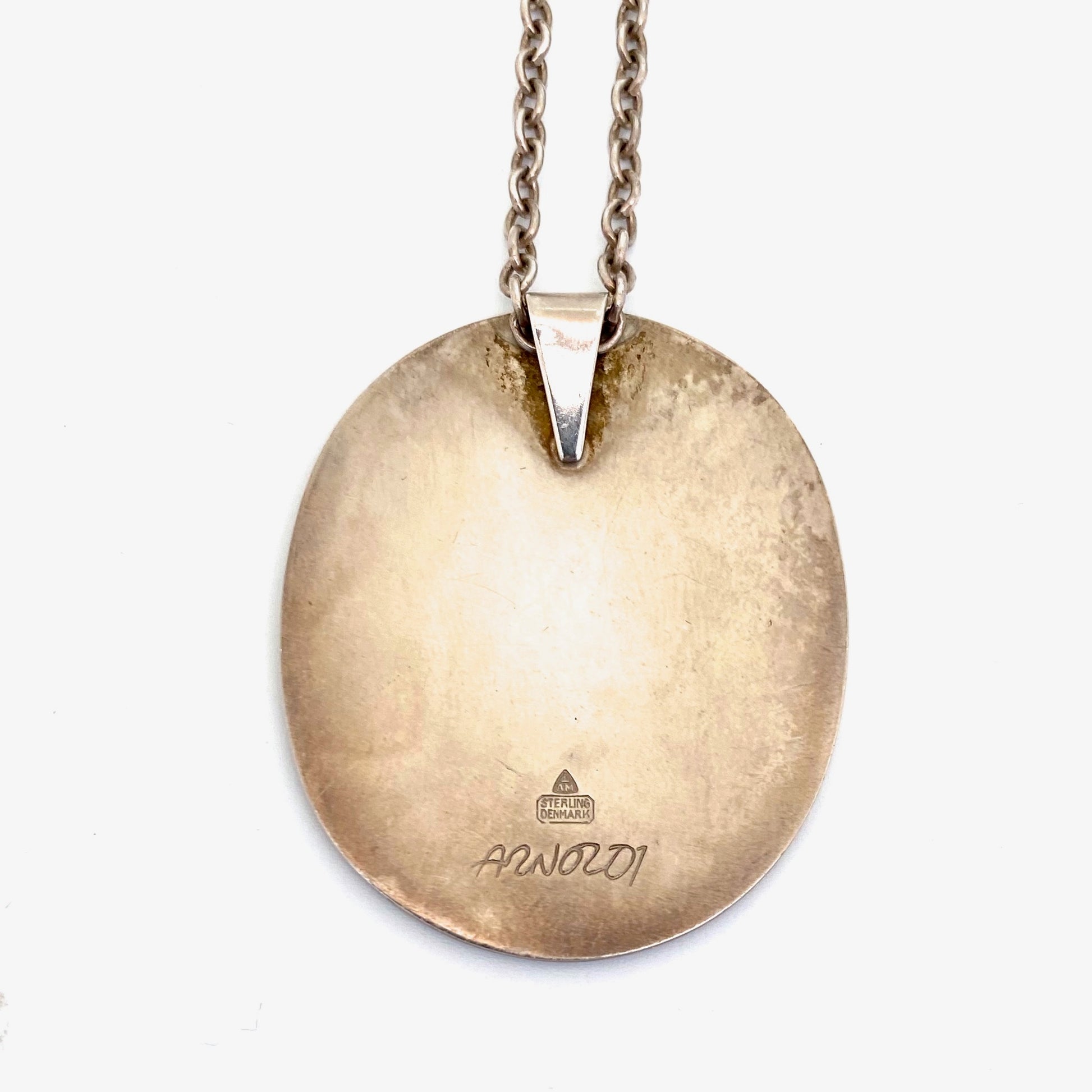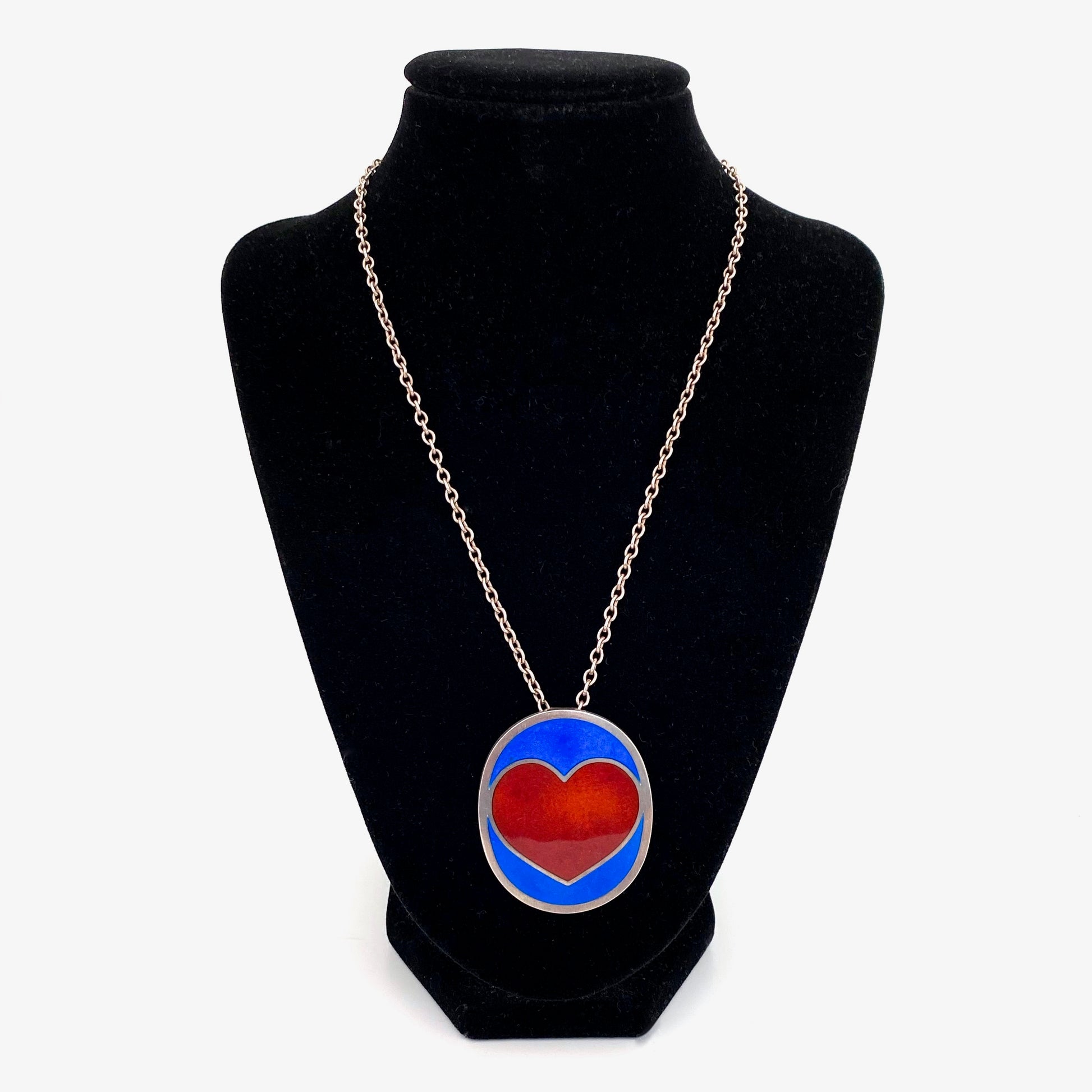 Anton Michelsen large silver & enamel heart pendant necklace ~ scarce