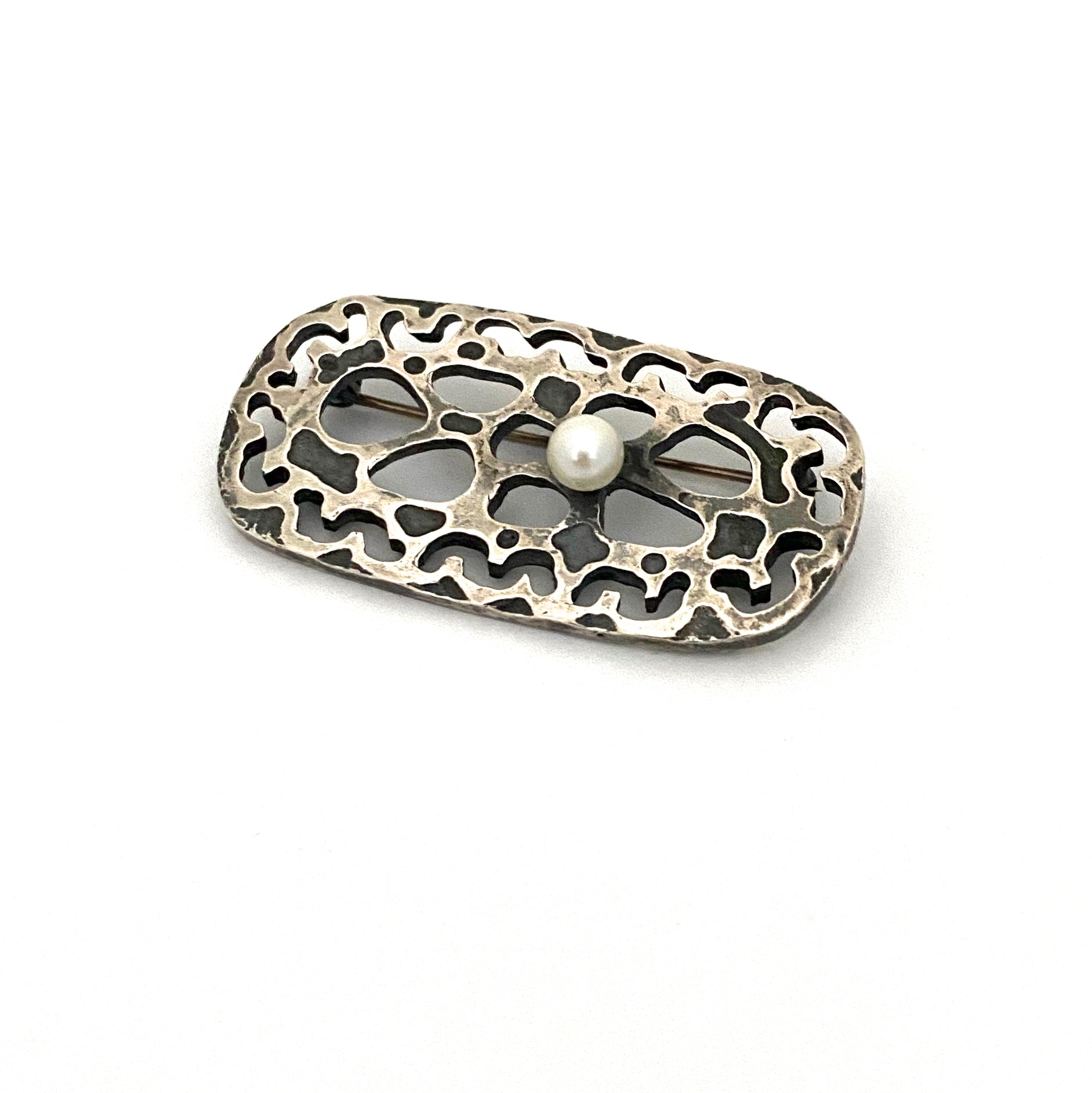 Bernard Chaudron sterling silver & pearl openwork brooch