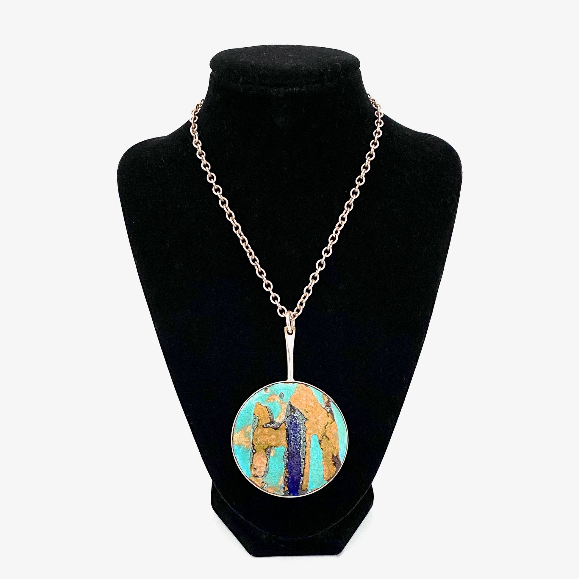 Borge Nielsen large silver & abstract enamel pendant necklace