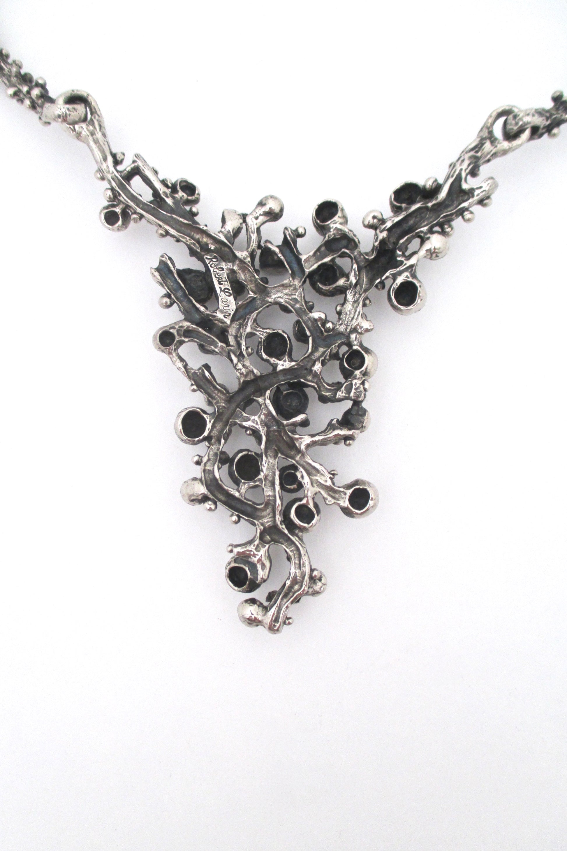 Robert Larin large brutalist pewter bib necklace