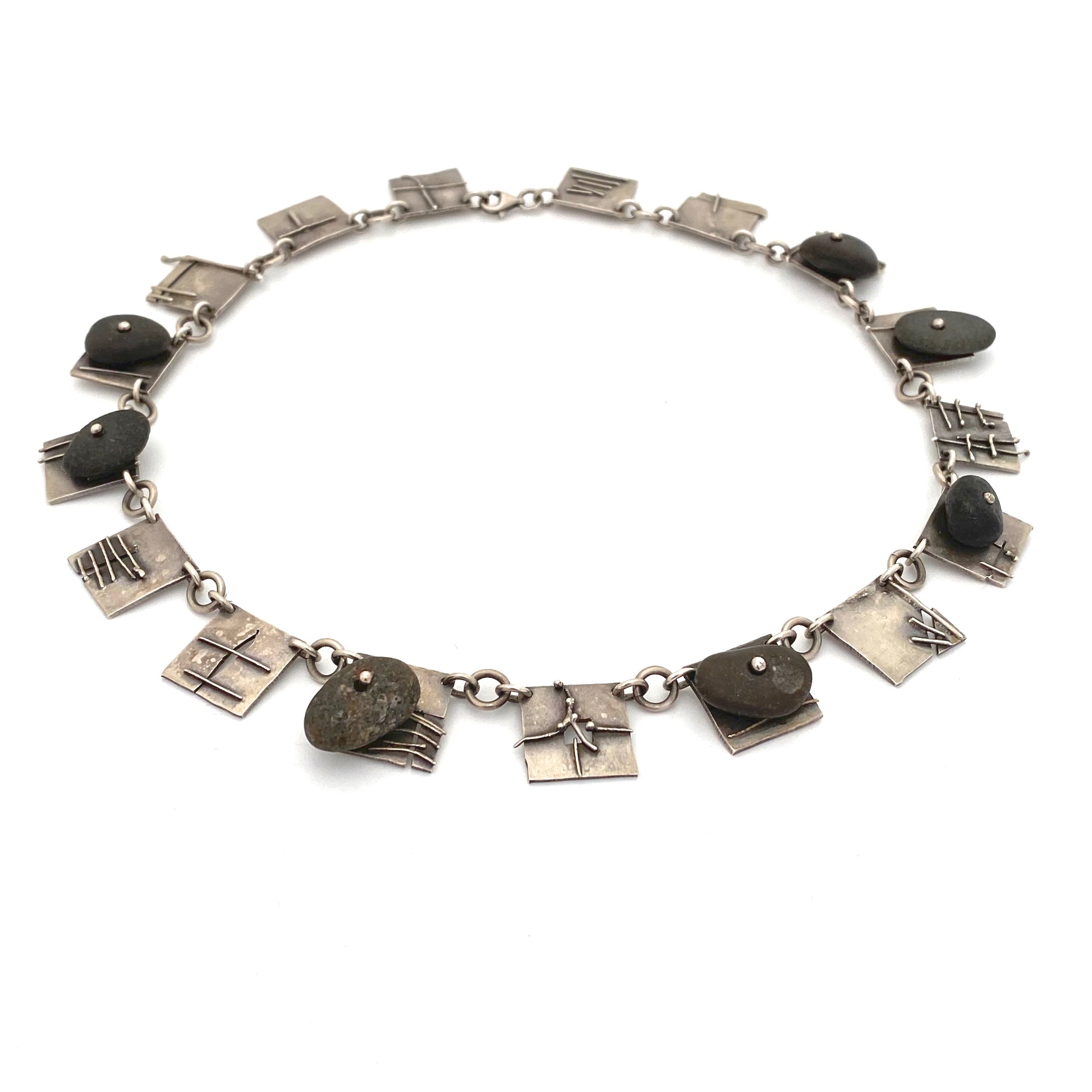 This is such a wonderful piece, with its many individually wrought elements and details, and the intricate construction, all hand wrought. We're pleased to have the corresponding bracelet, available here. (See last photo.)