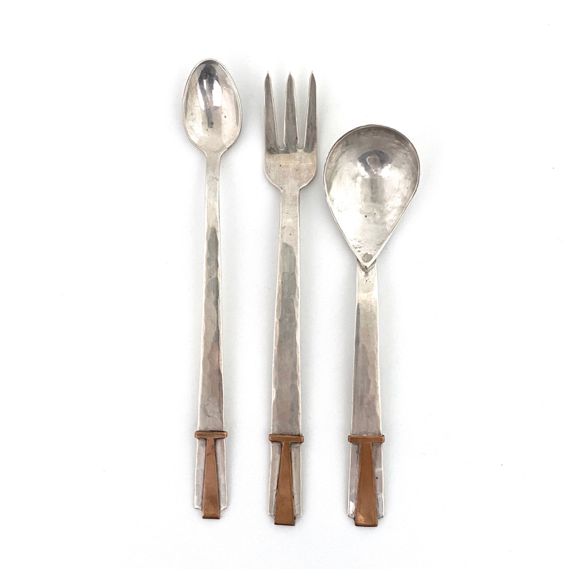 George Dancy Canada Arts & Crafts silver & copper hand wrought condiment set ~ 1951