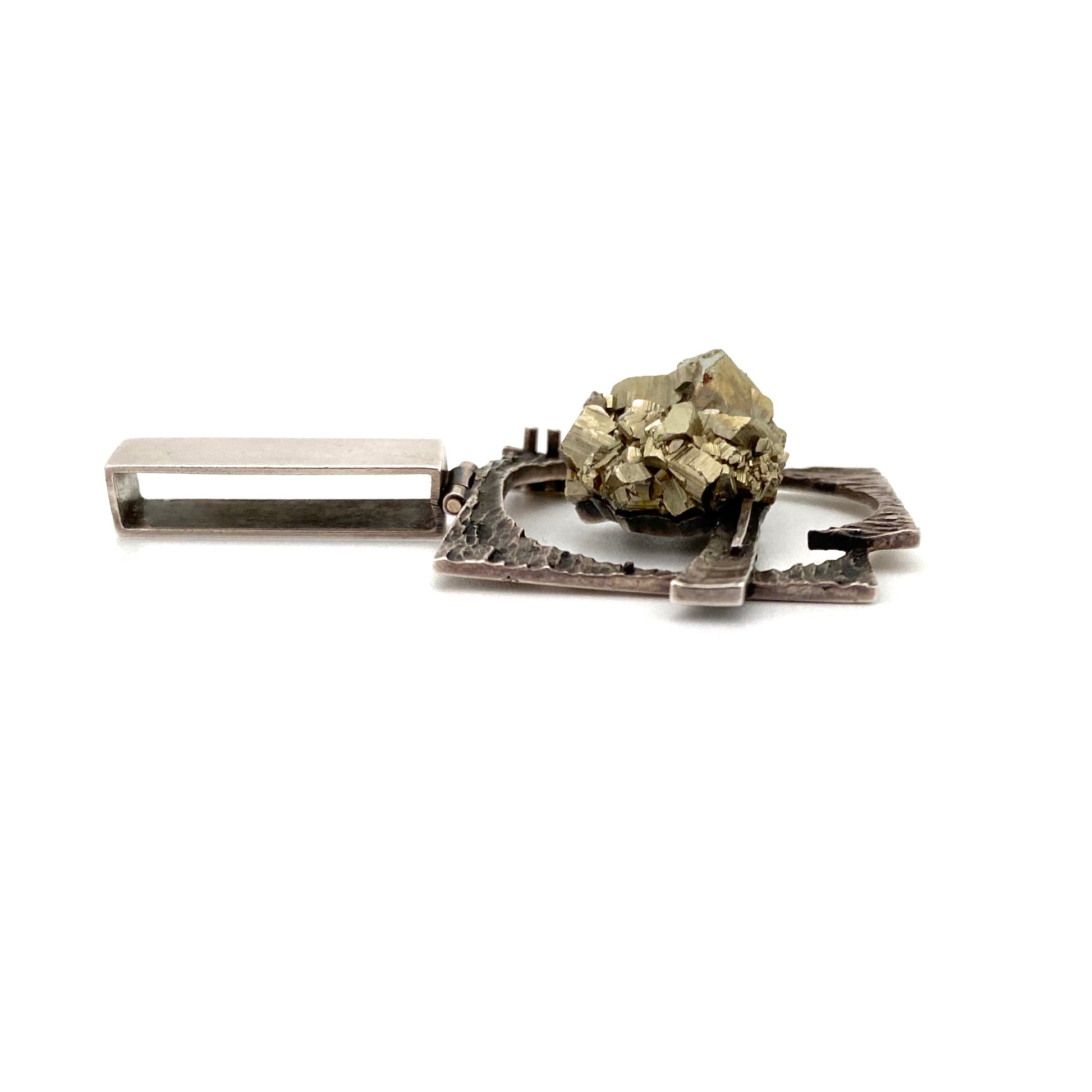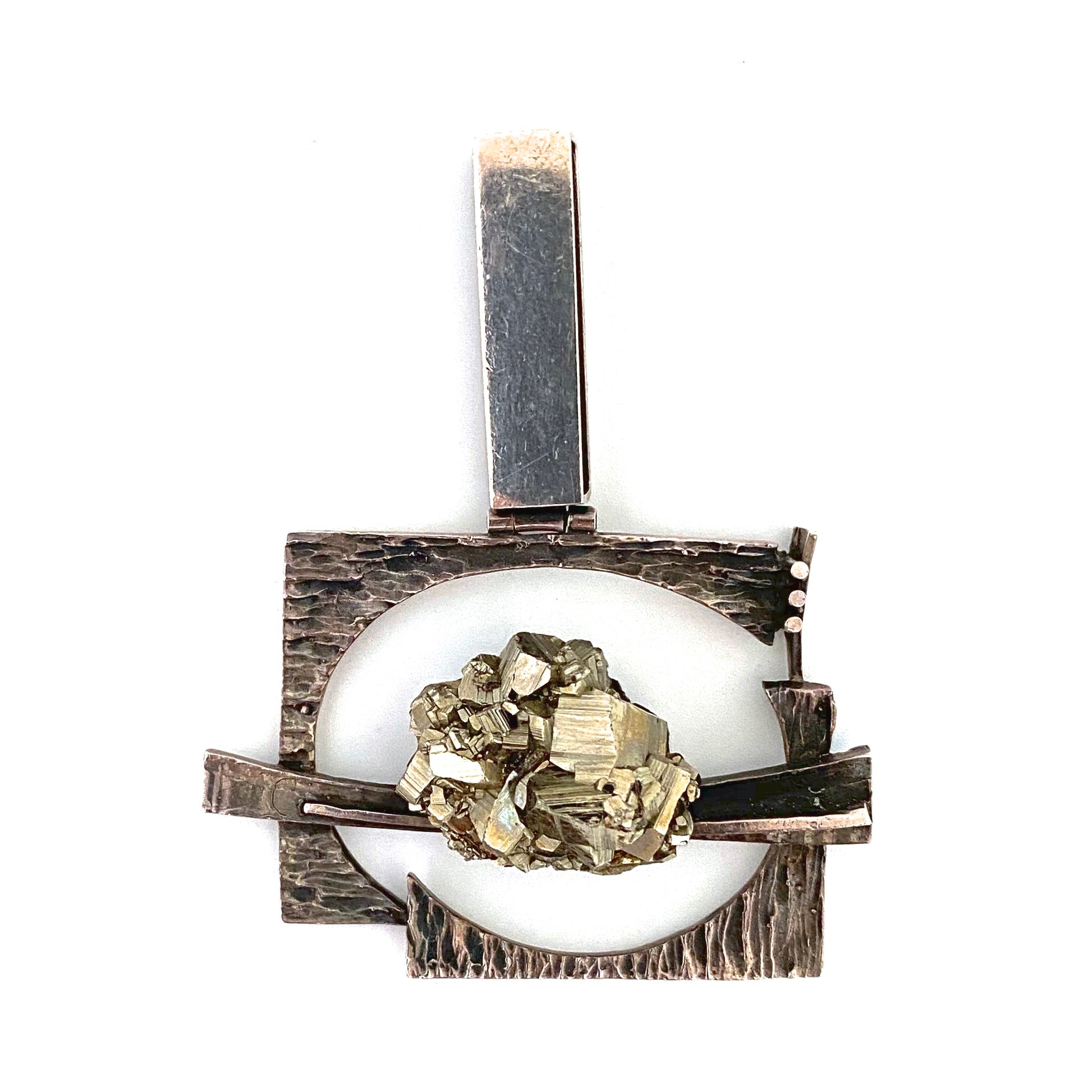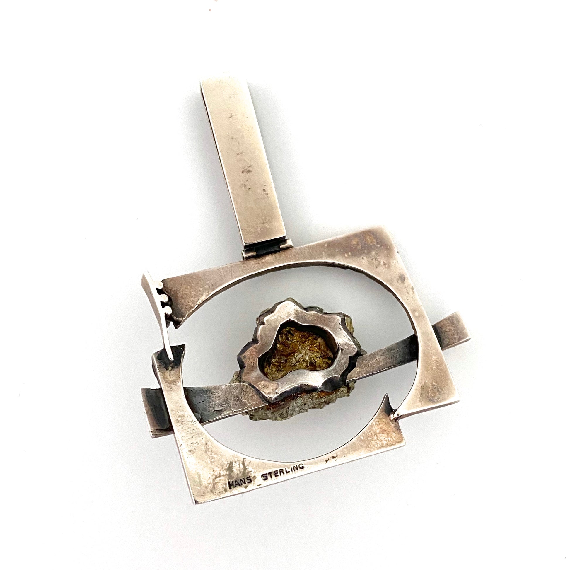 Hans Gehrig large silver & pyrite Modernist pendant ~ original box