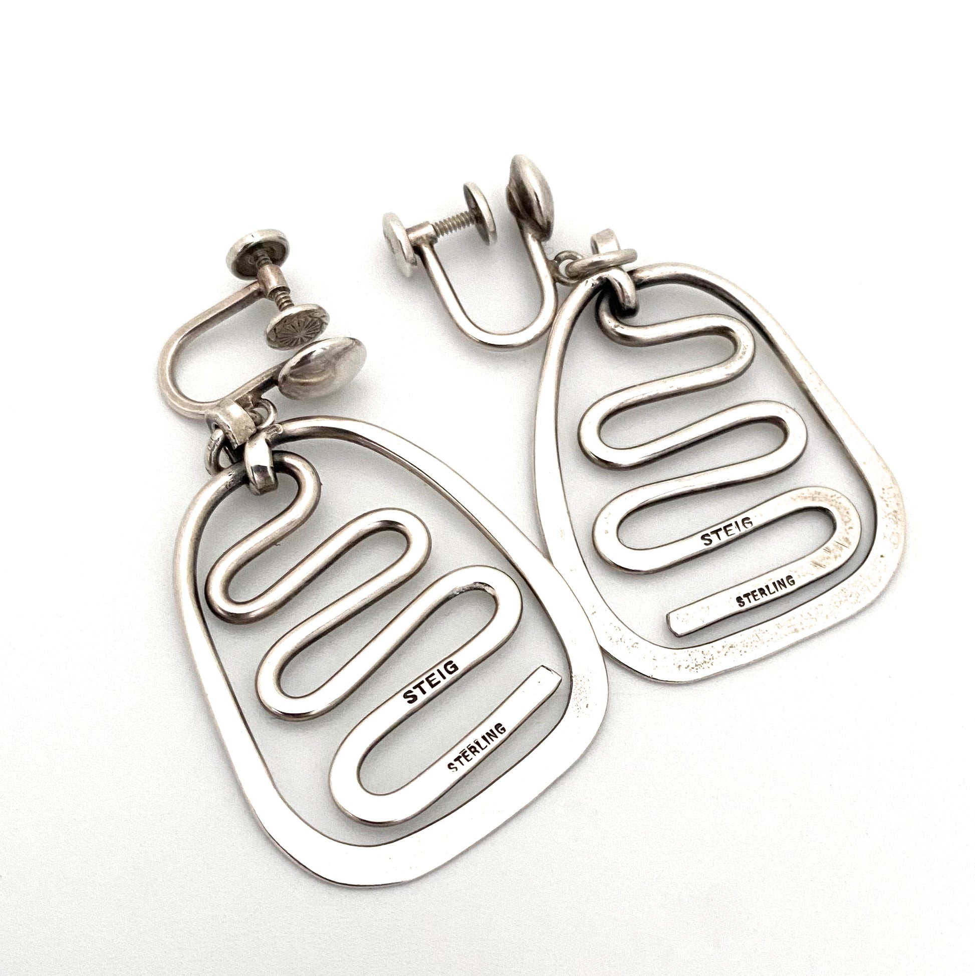 Henry Steig large silver drop earrings