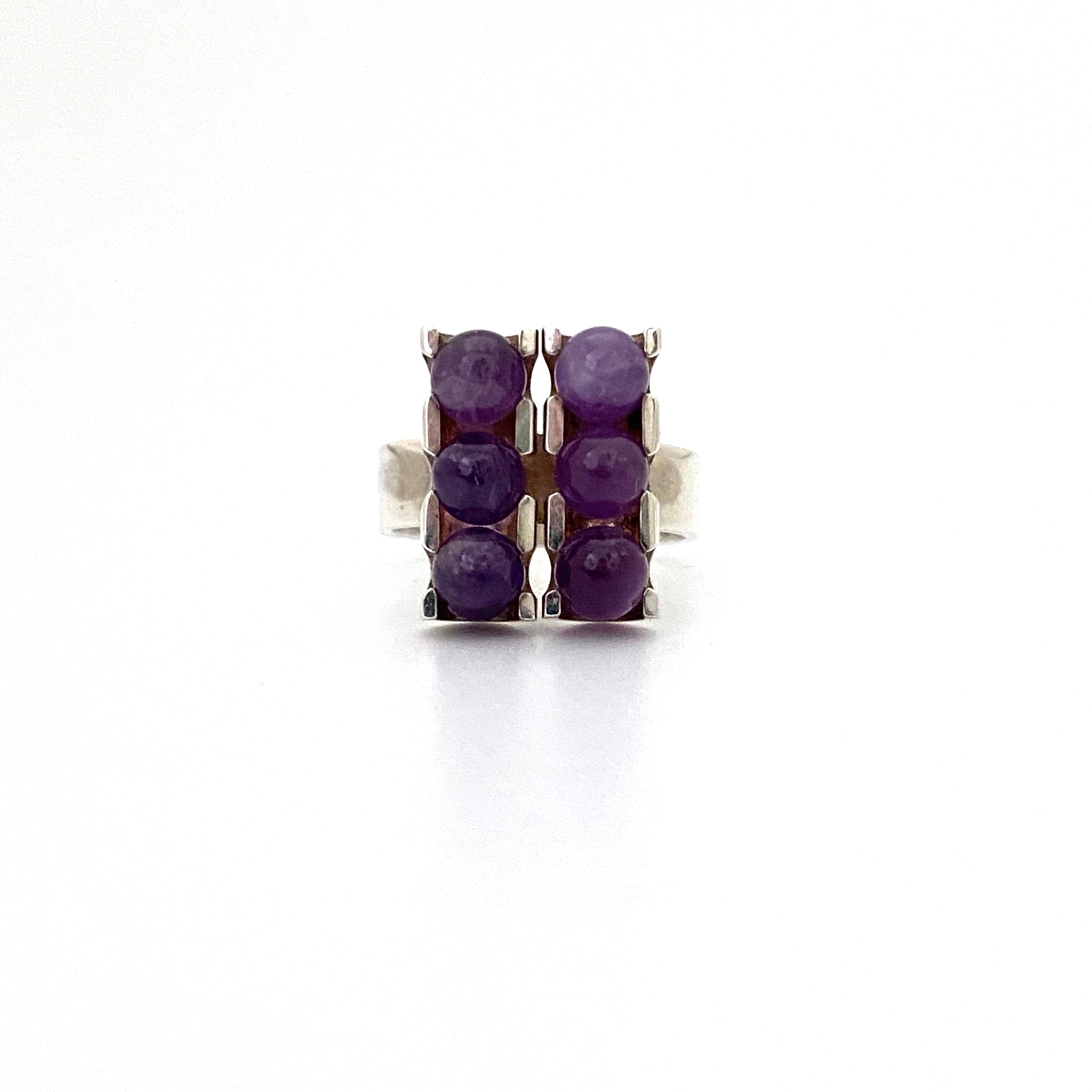 Kupittaan Kulta silver & amethyst '6 spheres' ring ~ Elis Kauppi