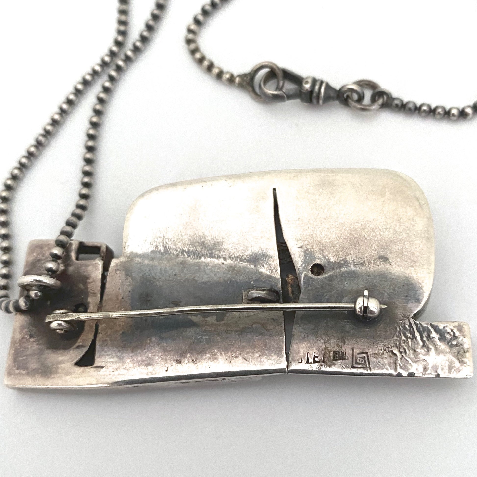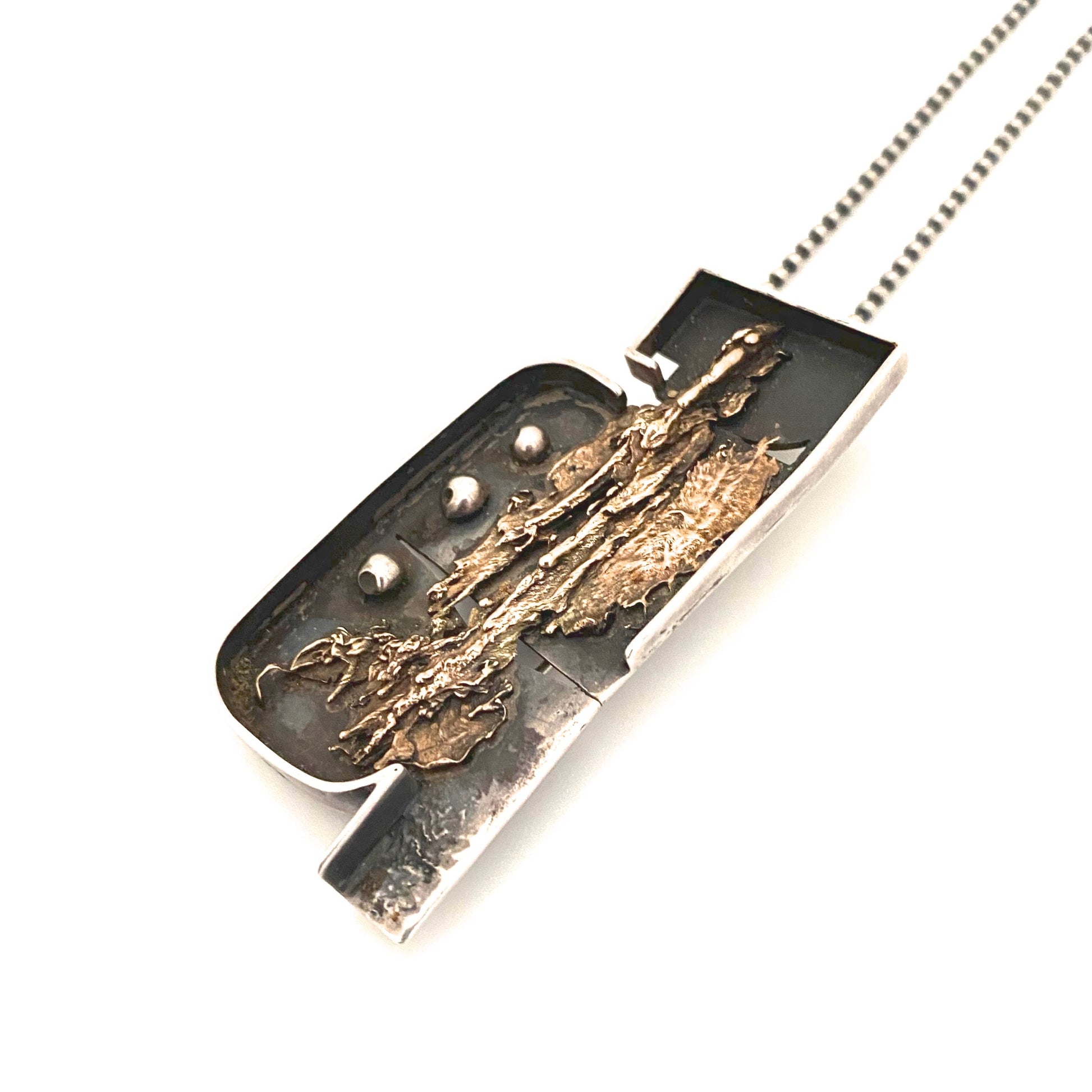 large silver & 14k gold brutalist pendant necklace ~ studio made