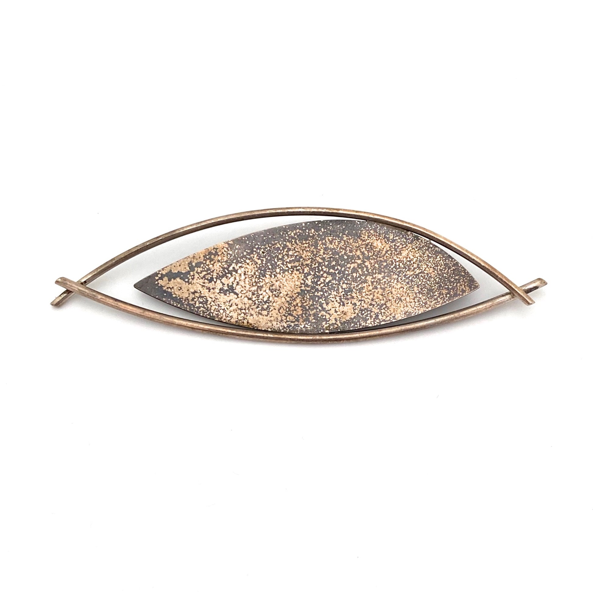 large vintage silver textured brooch ~ signed