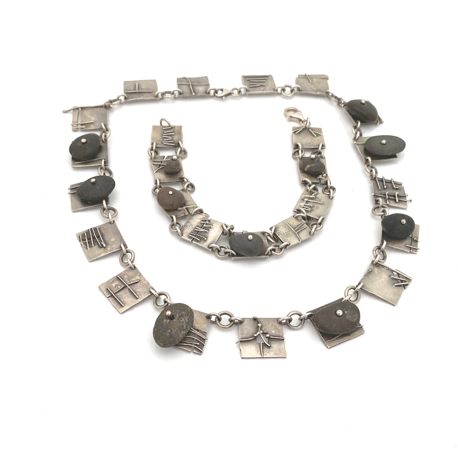 silver & pebbles studio made panel link bracelet