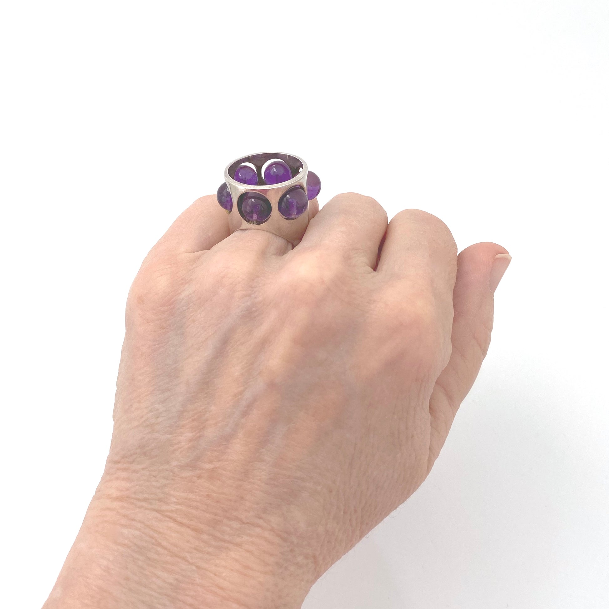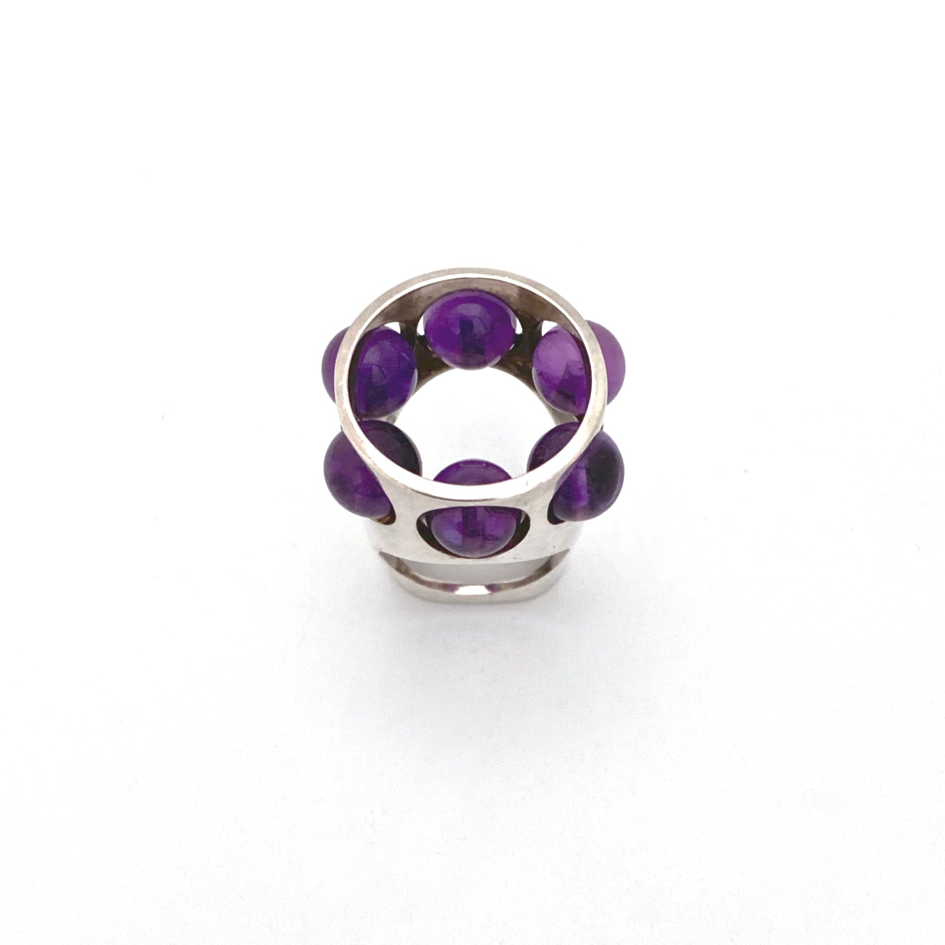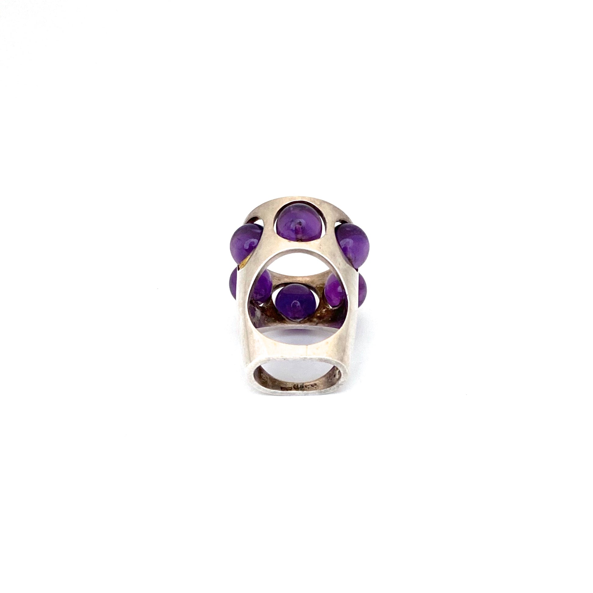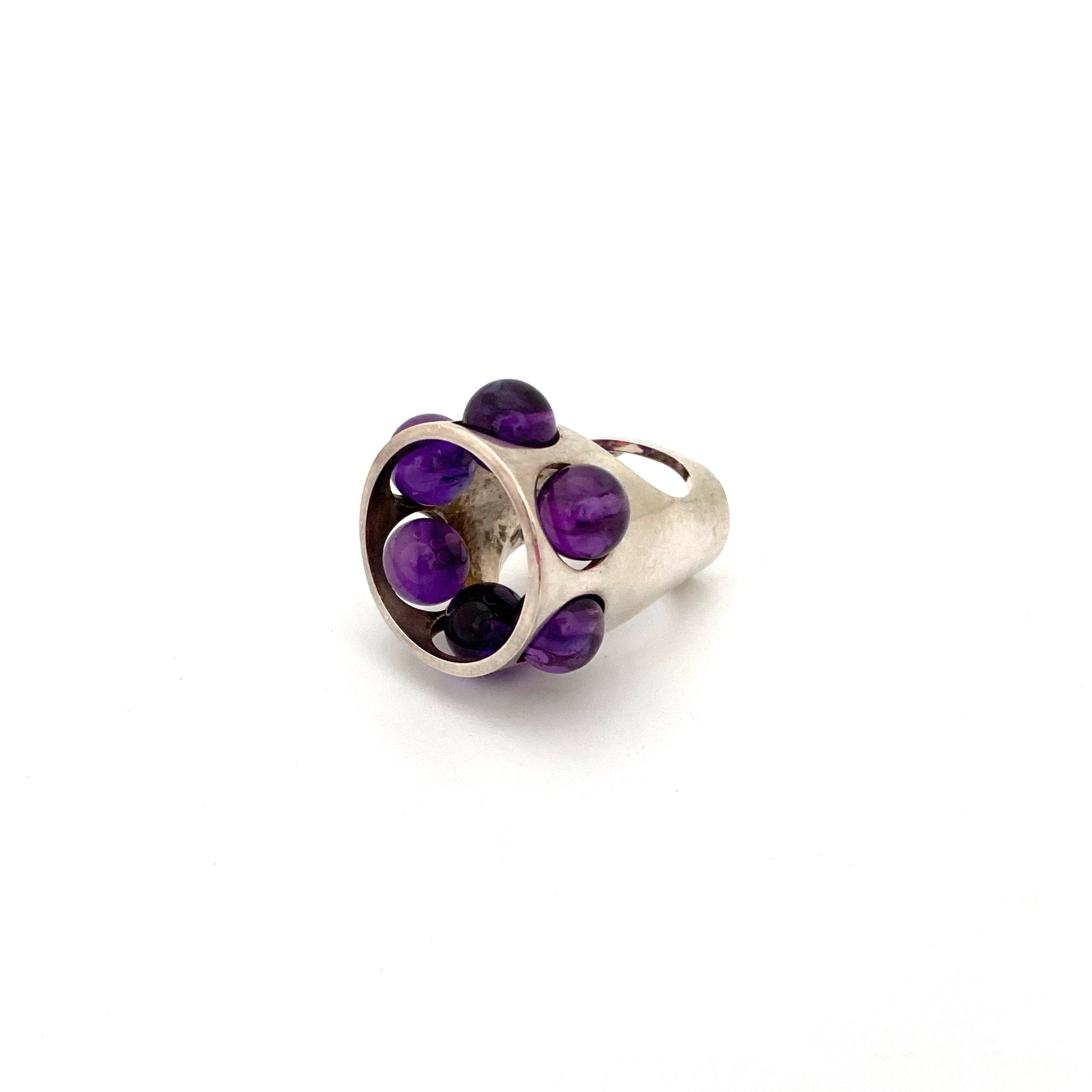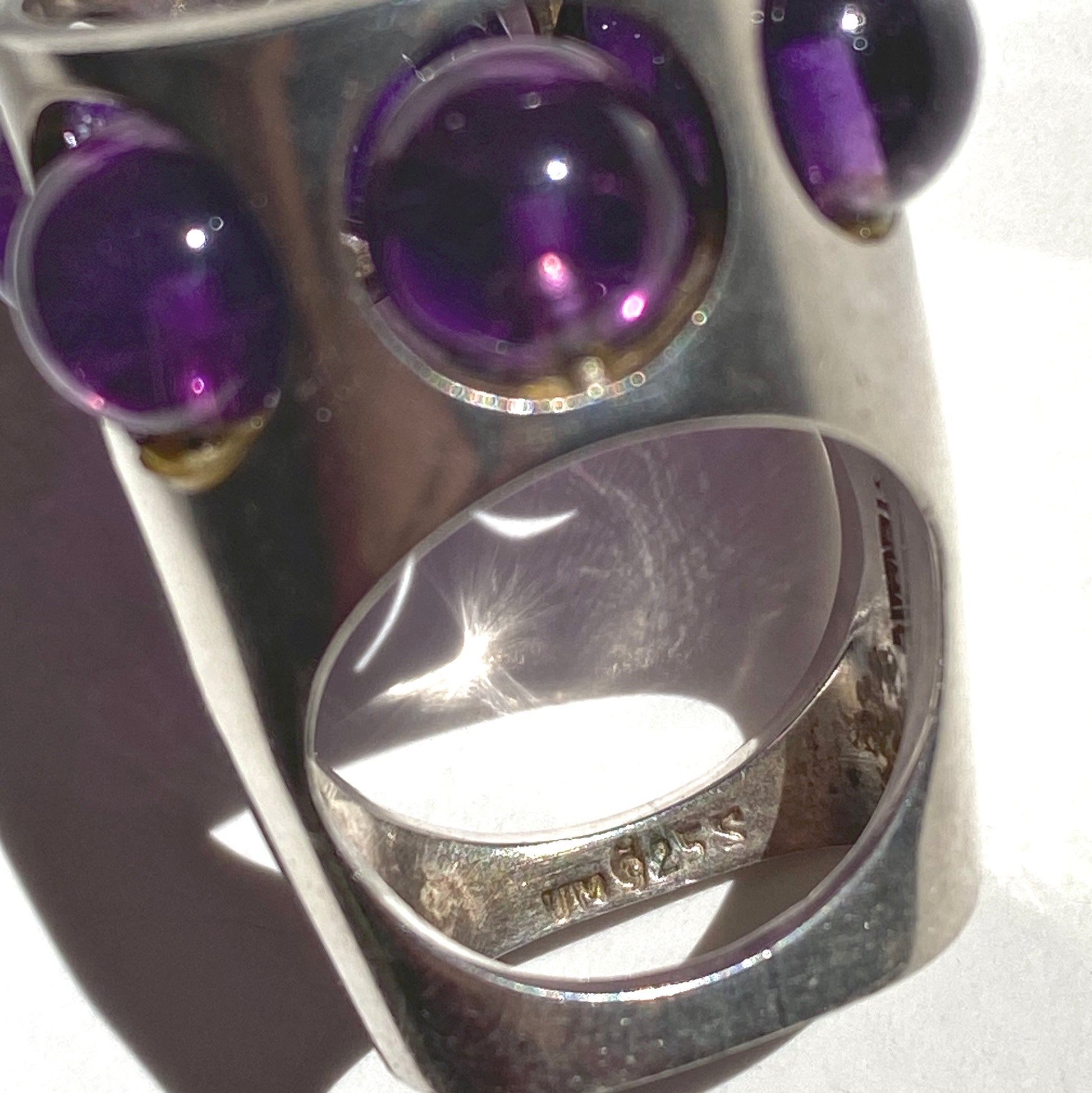 Uwe Moltke extra large silver & amethyst spheres ring ~ scarce