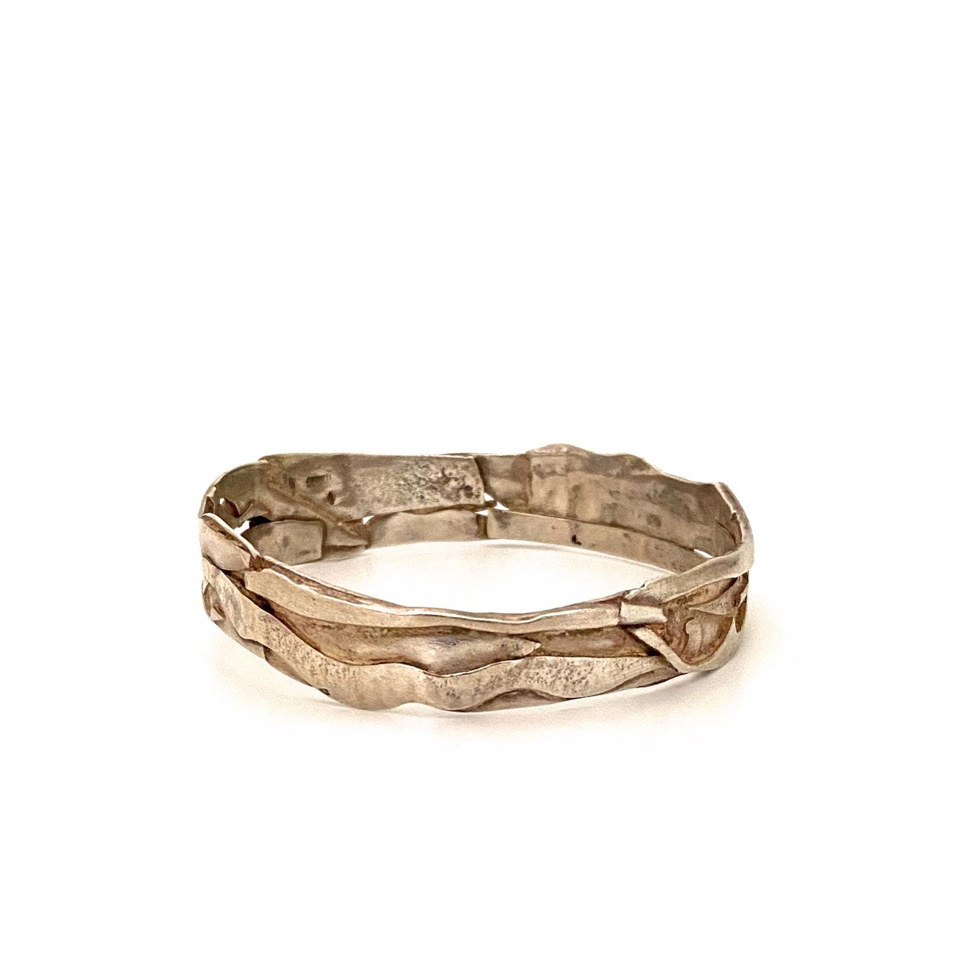 vintage silver brutalist bangle bracelet ~ hand wrought
