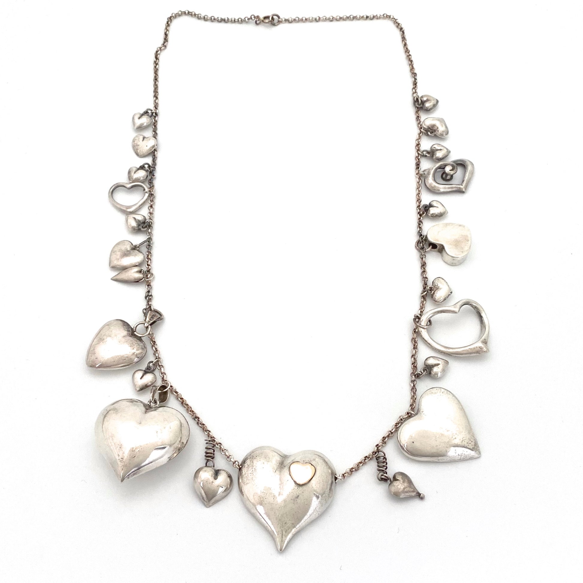 vintage silver hearts charms & pendants necklace ~ 23 hearts