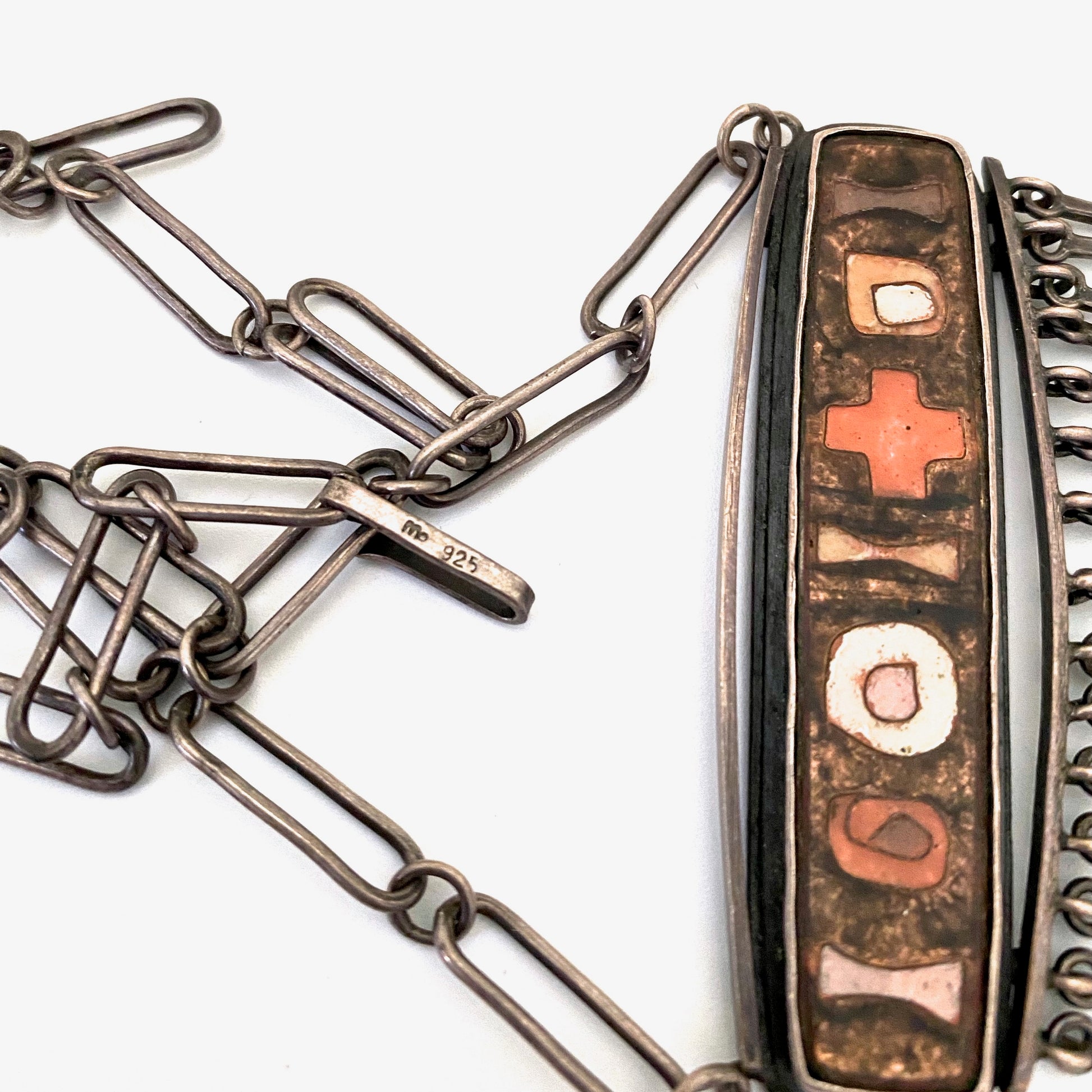 vintage sterling & matte enamel fringe necklace ~ rare