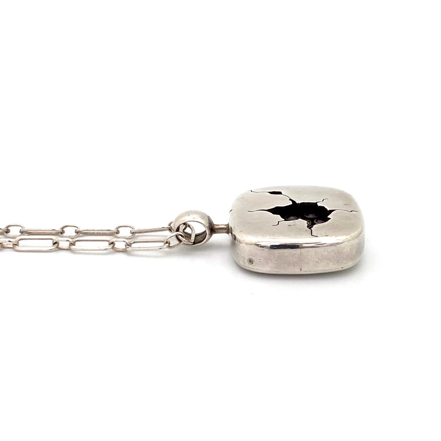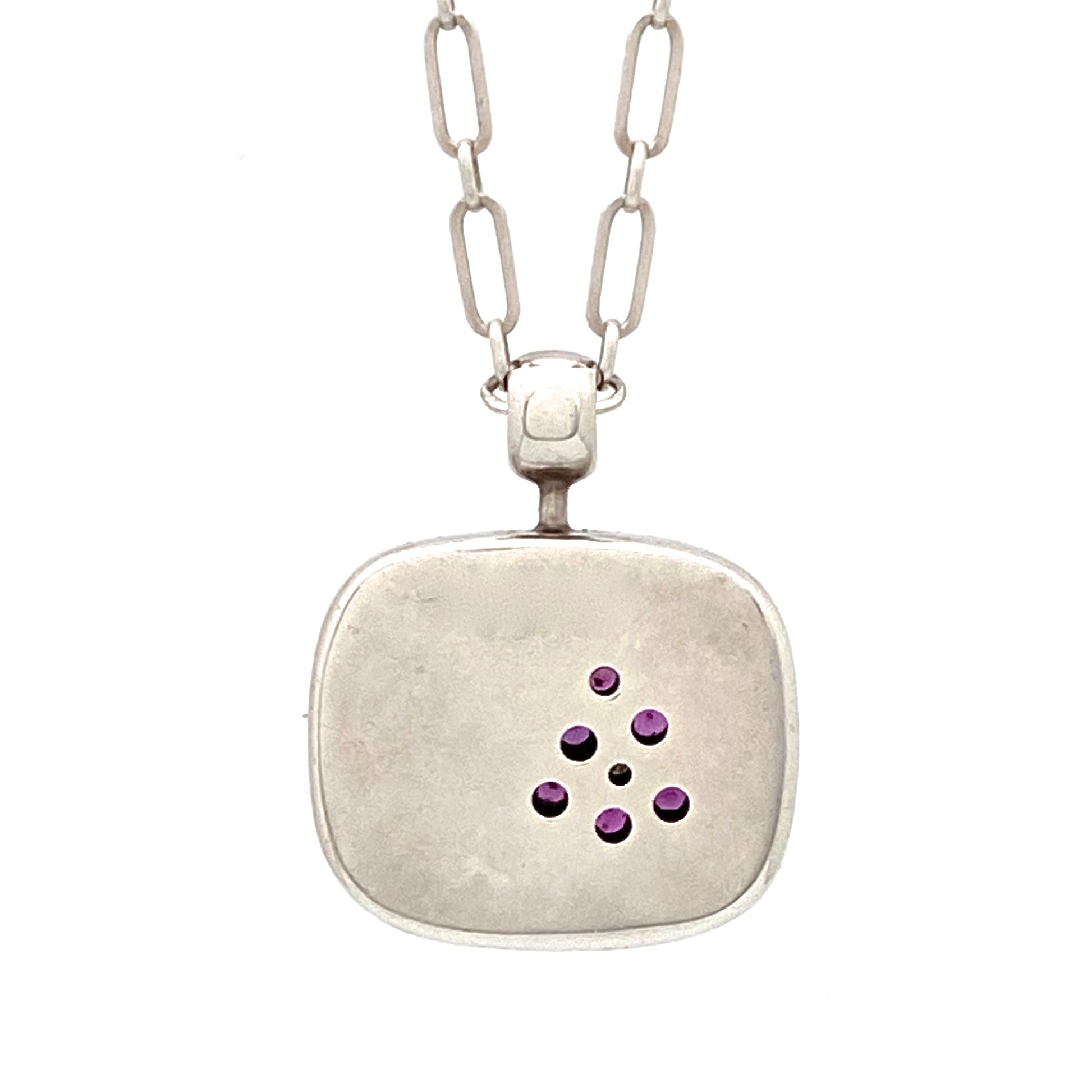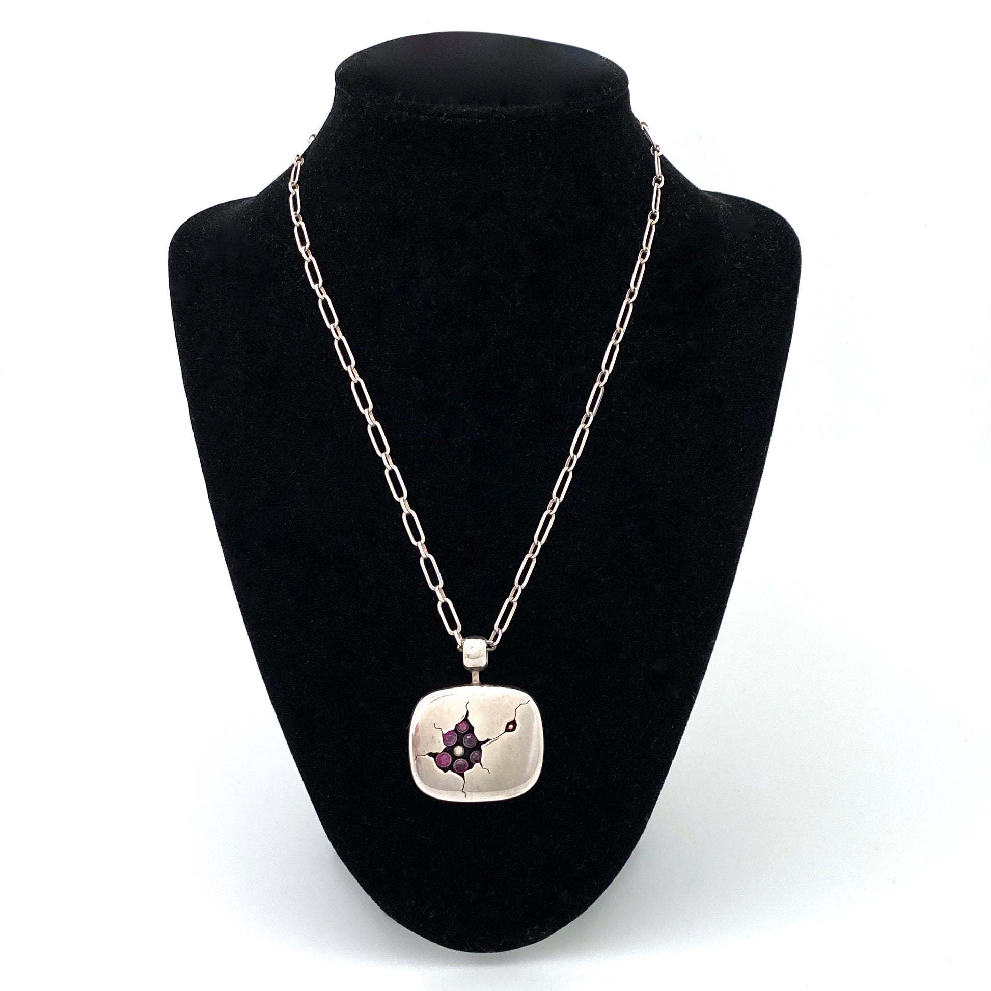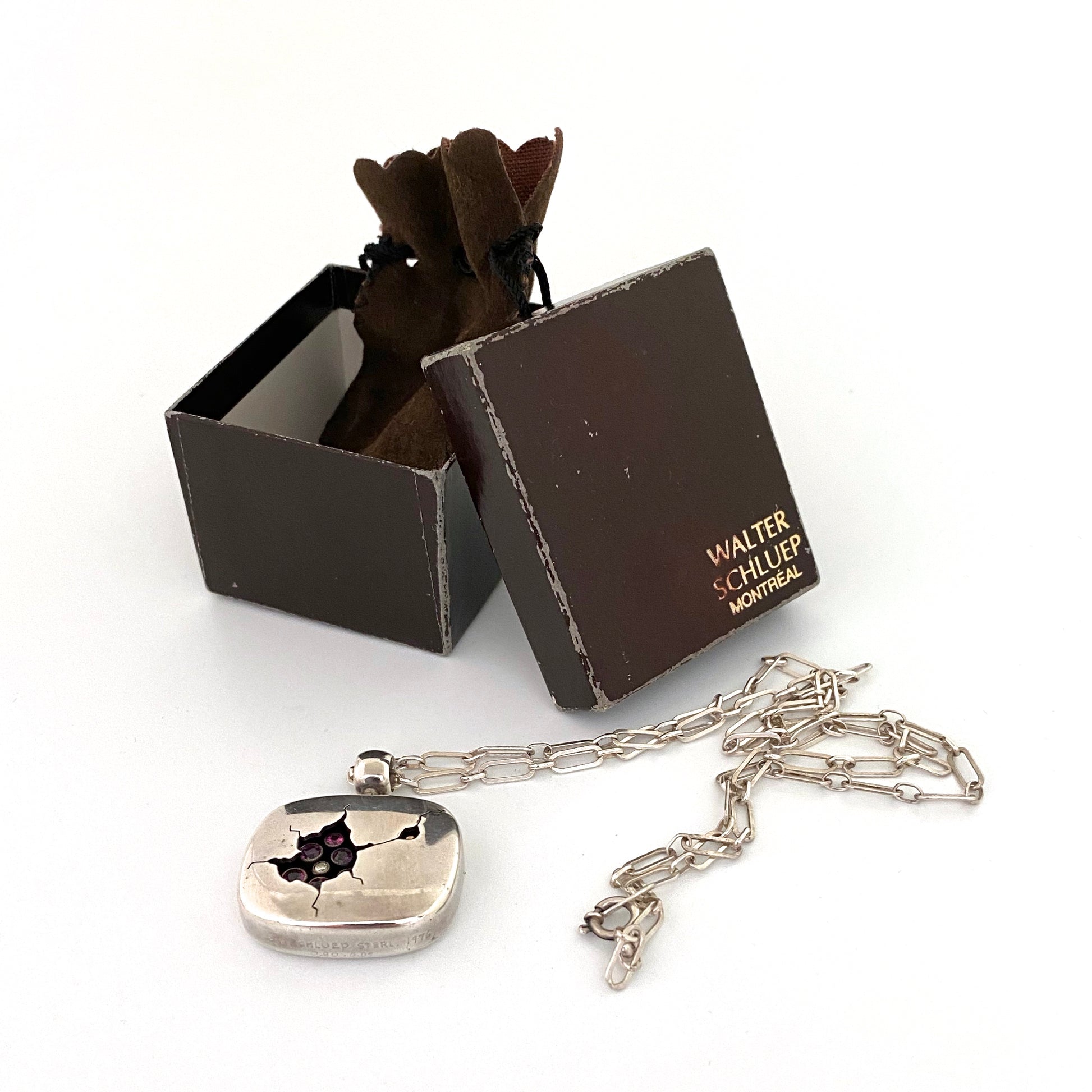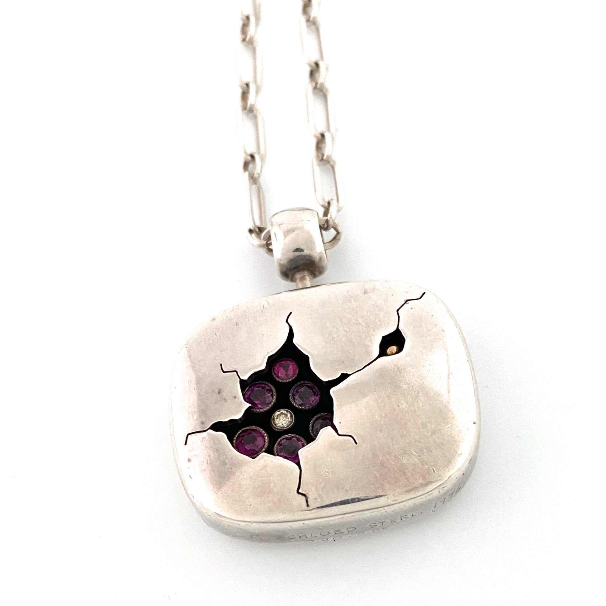 Walter Schluep silver, diamond & pink topaz pendant necklace ~ original box, 1976